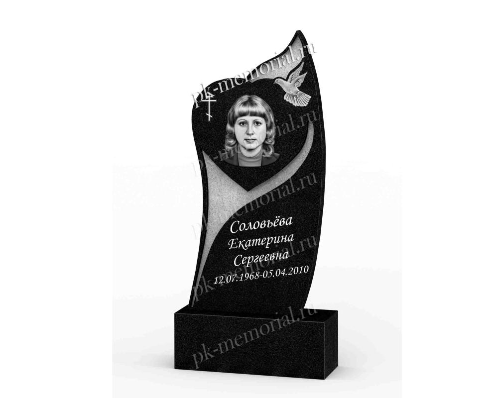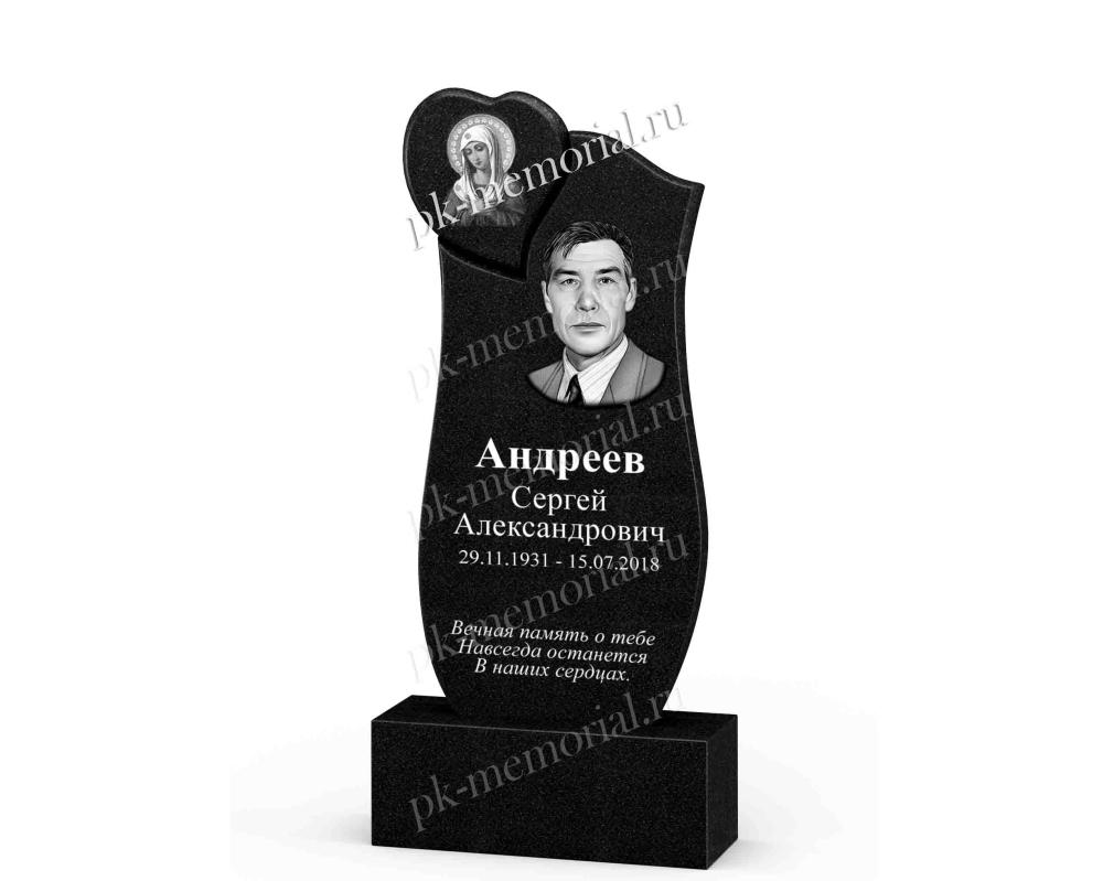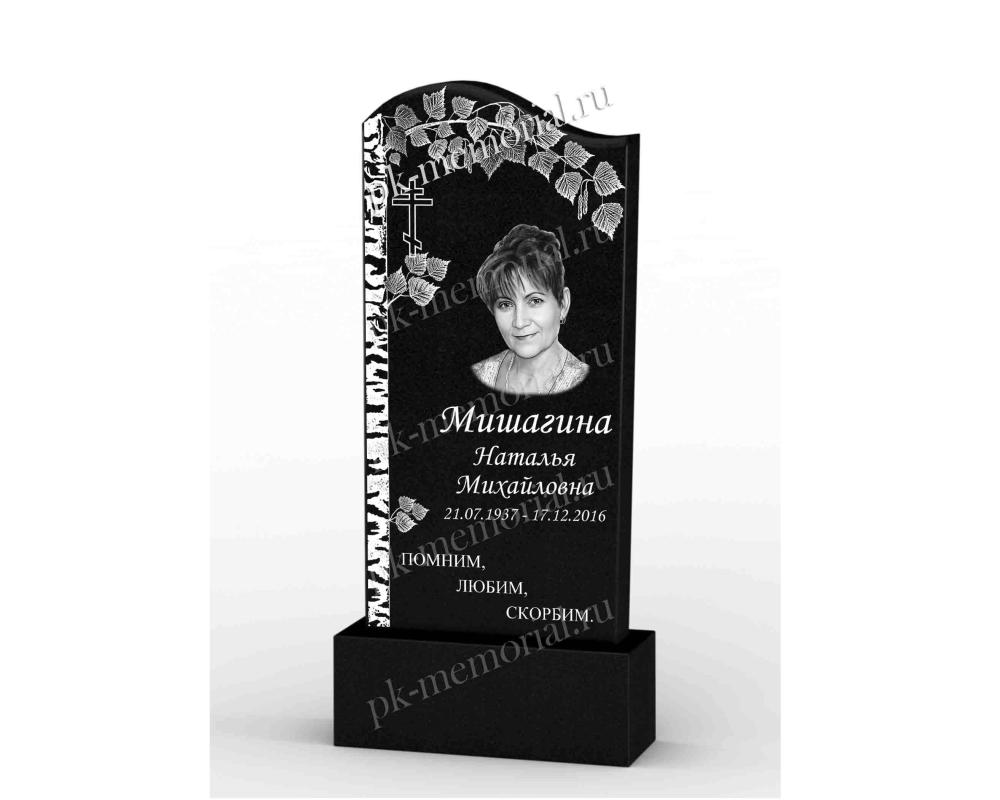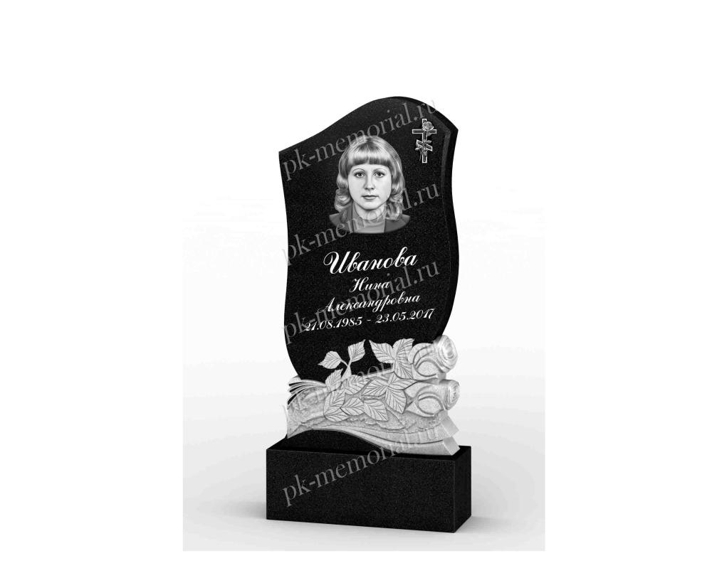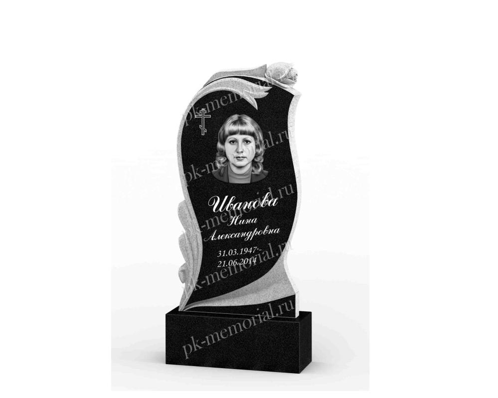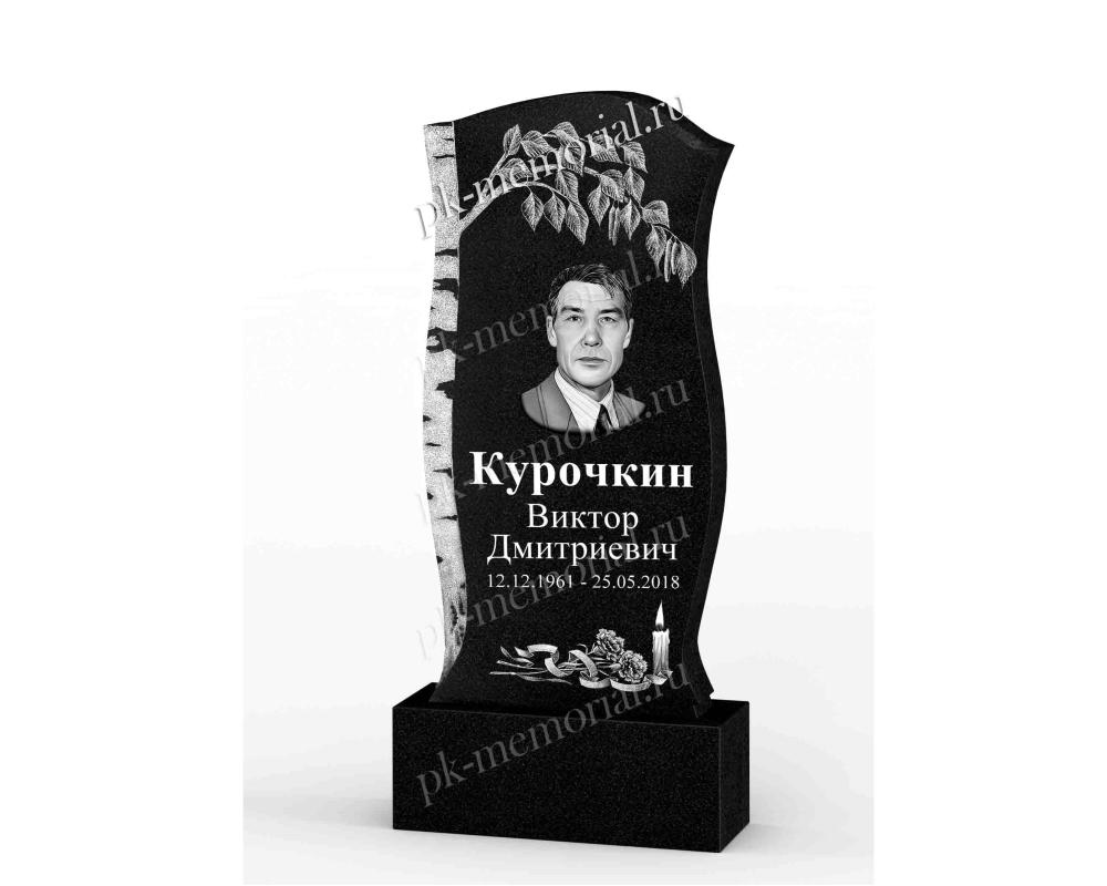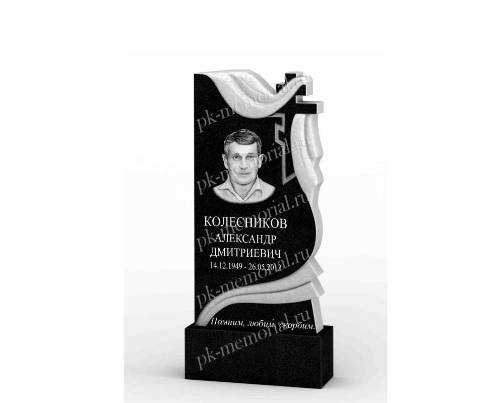 Универсальный памятник из Карельского гранита, расположенный вертикально, прямоугольная форма с элементами резки. Подходит для оформление одиночного захоронения.
